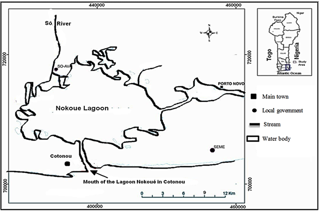 Study environment. Located in Benin in West Africa in the tropical zone between the equator and the Tropic of Cancer (between parallels 6° 30' and 12° 30' north latitude and meridians 1° and 30° 40' longitude Est) and more precisely in the coastal department, “the mouth of Cotonou” is the point where lagoon Nokoué, which normally covers an area of 150 km², meets the Atlantic Ocean through a channel called “Cotonou lagoon” (Fig. 1).