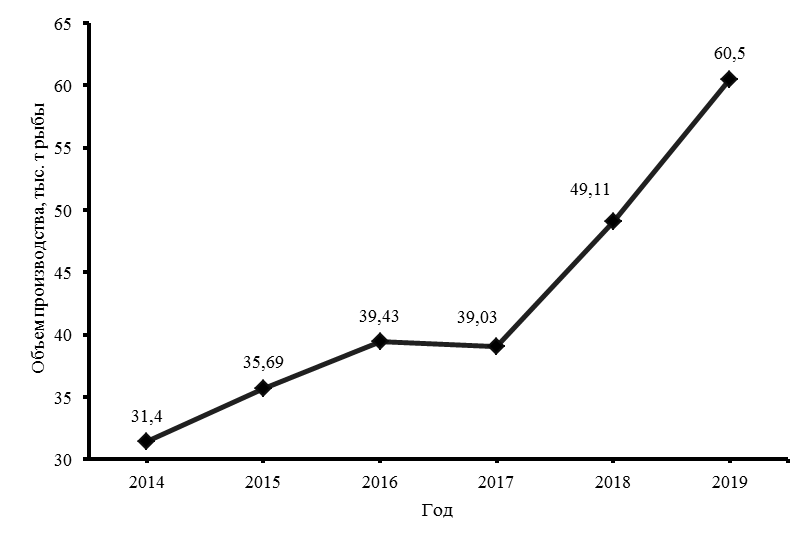 Рис. 2. Динамика объемов производства радужной форели в России [8]
