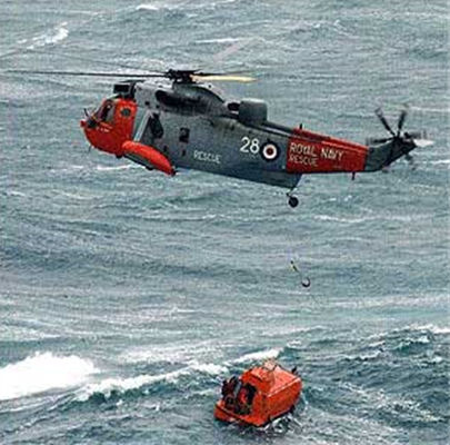 Рис. 3. Спасение экипажа MSC Napoli: а – спуск спасательной шлюпки; б – эвакуация с помощью вертолета