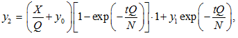 где N – внутренний объем спасательной шлюпки; X – количество CO2, выдыхаемого всеми находящимися в ней людьми; Q – общая производительность вентиляции; y0 – концентрация CO2 в свежем воздухе; y1 – начальное значение концентрации CO2 в помещении спасательной шлюпки; y2 – концентрация CO2 внутри спасательной шлюпки за время t.