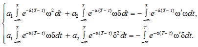 Примем, что объект стационарен на интервале осреднения, задаваемом экспоненциальной весовой функцией, поэтому коэффициенты ai и а2 можно выносить за знак интеграла: