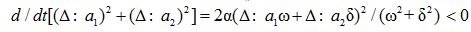 Если параметры 1 / Т и kδ / T точно не известны, что равноценно изменению режима эксплуатации буксируемого судна, то при подстановке значений данных от реального буксируемого объекта dω(t) / dt, dω(t) и δ(t) в выражение (1) равенство не будет соблюдаться. Поэтому обозначим невязку уравнения (1) через ε(t), а параметры модели a1 = 1 / T и a2 = = kδ / T, тогда