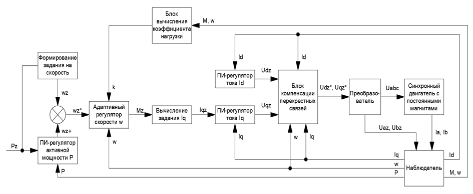 Рис. 3. Структура адаптивного регулятора скорости с контуром активной мощности