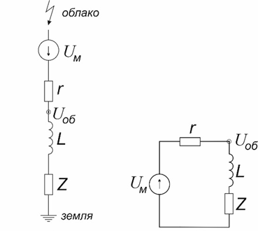 где r и Z – волновое сопротивление молнии и объекта соответственно.