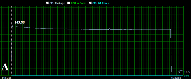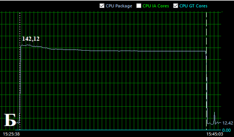 Рис. 4. Изменение мощности процессора при переходе в стресс-режим работы: