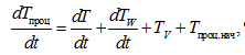 В общем случае изменение температуры процессора Tпроц при переходном режиме основывается на скорости изменения температуры теплоносителя, установившегося расхода теплоносителя и мощности охладителя с учетом первоначальной температуры процессора: