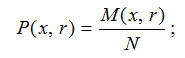 4) определяется вероятность того, что случайно выбранный элемент окажется внутри сферы, определяется как отношение M(x, r) к общему числу элементов в выборке