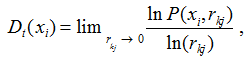 При обработке данных часто встречаются пропуски, нарушающие непрерывность функции P(x, r) по параметру r. Для вычисления усредненной поточечной размерности выбирается случайное подмножество данных размером L / N, и для каждого случая определяются значения P(x, r). Усредненная хаусдорфова размерность множества вычисляется по специальной формуле:
