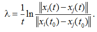 , то можно определить показатель λ скорости разбегания любых двух траекторий в окрестности точки t0 из соотношения