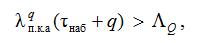 – символ сравнения, а ΛQ – допустимое значение интенсивности поступления (выявления) признаков компьютерной атаки на q-м временном интервале (τнаб + q) наблюдения за состоянием параметров защищенности, при превышении которого уровень защищенности ОКИ, использующих ТИВ, с большой вероятностью перейдет в граничное и потенциально катастрофическое состояние из любого другого состояния. Такая формулировка верна и имеет право на применение в предположении, что в целом алгоритм оценки и прогнозирования уровня защищенности, с точки зрения математики пространств состояния, можно рассматривать как процесс перехода уровня защищенности ОКИ из состояния в состояние. В рамках контроля уровня защищенности и определения, по сути, события бифуркации, на начальном (первом) шаге наблюдения, для «стартового» временного интервала оценки и прогнозирования, выражение для контроля интенсивности поступления признаков компьютерной атаки (1) имеет вид