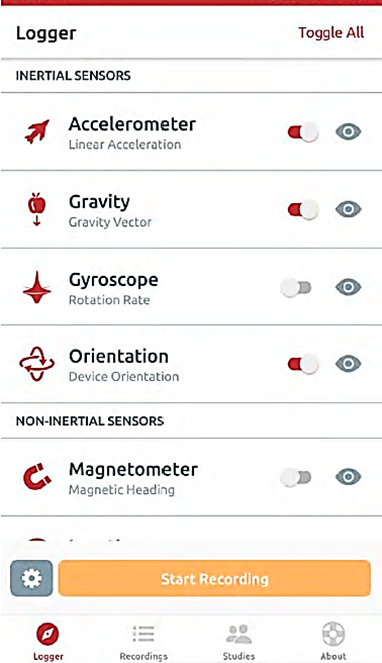 Fig. 6. Program Sensor Logger for measuring the acceleration of the catamaran