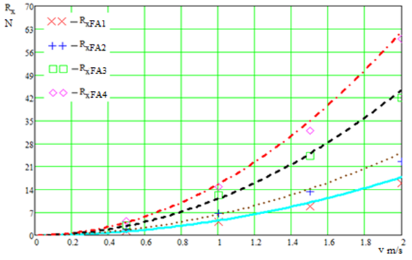 – resistances of FA with speeds of 0.5, 1.0, 1.5, 2.0 m/s;