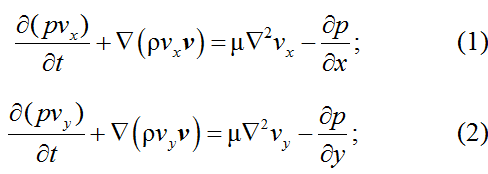where vx, vy, vz – the components of the velocity vector v along the x, y, z directions, respectively; μ – the dynamic viscosity of water.