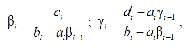 when i = 2, 3, …, n – 1 and initial β1 = c1 / b1; γ1 = d1 / b1, where n – is the number of equations and unknowns.
