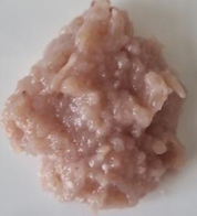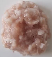 The consistency of the mince is jelly-like. When molded, the mince sticks, the product does not hold its shape well, and spreads over a short period of time The consistency of the mince is crumbly. Touching the product with slight force after molding |