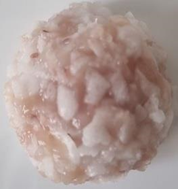 The consistency of the mince is jelly-like. The mince is sticky to the touch, spreadable. When molding, the product sticks significantly, does not hold its shape, and spreads The consistency of the mince is loose, dry, crumbly, the product after molding easily collapses, turning into irregularly shaped pieces |