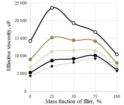 Effective viscosity was measured on a Brookfield DV-II + Pro rotational viscometer in accordance with the instrument manual (Rheocalc v.3.3 build 49‑1) using spindle RV7 made of stainless steel, cylindrical shape. All studies were performed in triplicate. The results were statistically processed using Microsoft Office 2016.