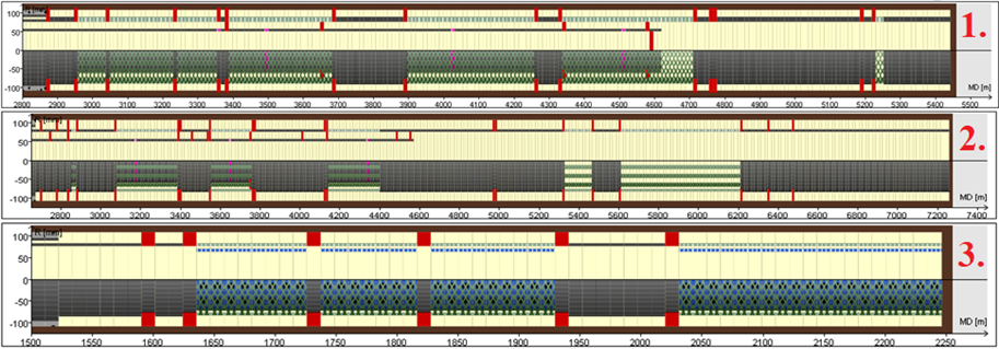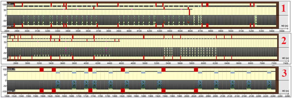 На основании данного программного обеспечения были проанализированы несколько новых пробуренных скважин на неокомский ярус. На рис. 1 представлены расчеты фактических схем нижнего заканчивания трех скважин.
