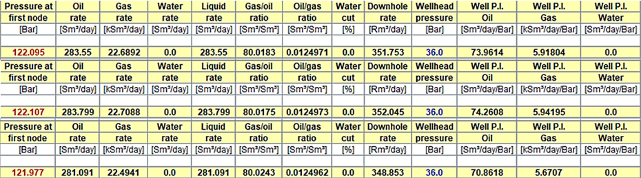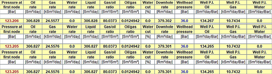 Для систематизации материала ниже приведены скриншоты технологических показателей по результатам расчета на программном комплексе в разрезе каждой скважины. На скриншотах в сравнении сверху вниз представлен расчет со стандартным набором оборудования нижнего заканчивания, 3 фильтра на 100 м и 1 фильтр на 100 м продуктивного коллектора (рис. 4–6).