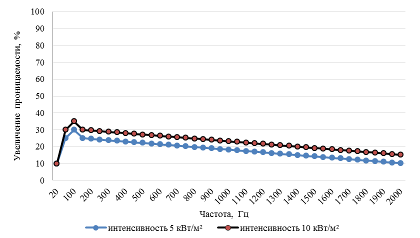 1) частота акустического воздействия: для низкопроницаемых зон – 50–100 Гц; для высокопроницаемых зон – 100–500 Гц;