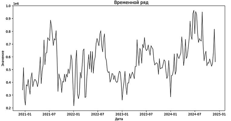 Статистические методы работают с двумерными данными (количественная переменная, расположенная на временном отрезке), которые подаются на вход модели, что позволяет выделить как сезонную составляющую, так и трендовую. Однако не все данные подходят для таких методов. Для верификации пригодности временного ряда необходимо провести анализ стационарности ряда. Это фундаментальное свойство для многих моделей анализа временных рядов, при котором математическое ожидание, дисперсия и структура автоковариаций остаются постоянными во времени. Для проверки данного свойства ряда проводят тест Дики – Фуллера [6]: