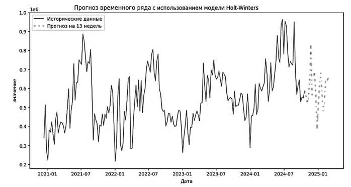 Рис. 5. Прогноз адаптивной модели Хольта-Винтера