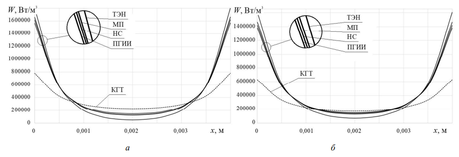 п = 1 530 W/m2: KGT (a) radiator; nichrome spiral (б)