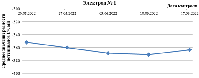 Рис. 5. Динамика измерений результатов потенциала в период с 20.05.2022 по 17.06.2022,