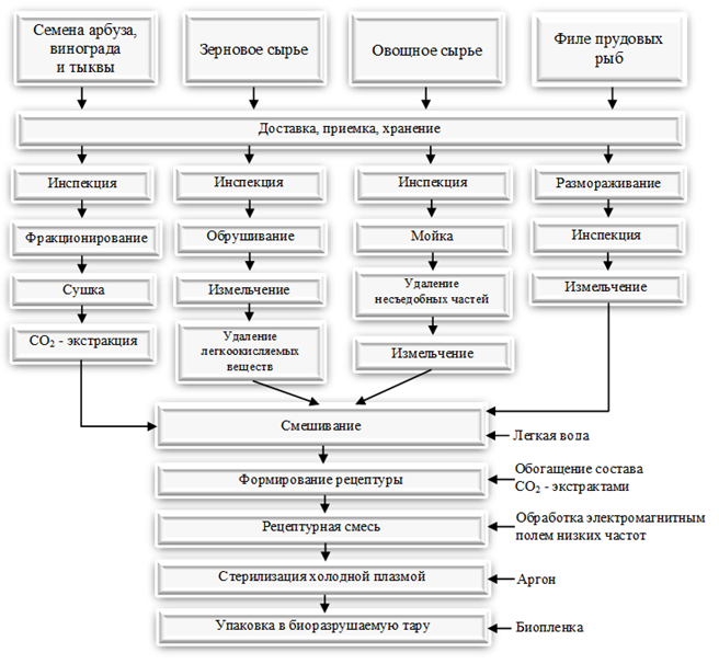 Разработка структурной схемы переработки растительного и животного сырья с использованием современных технологических приемов