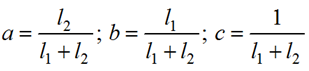 y1, y2 – обобщенные координаты; l1, l2 – расстояния т. А и т. В от центра тяжести; h – координата т. H