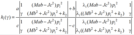 Частотная функция обнуления ω2(γ, h) может быть определена в неявной форме, путем приравнивания числителя передаточной функции (9)