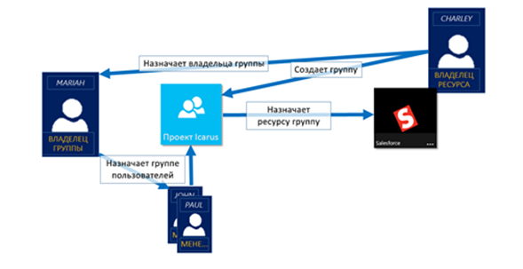 – назначение группы: владелец ресурса назначает ресурсу группу AzureAD, которая автоматически предоставляет всем своим членам доступ