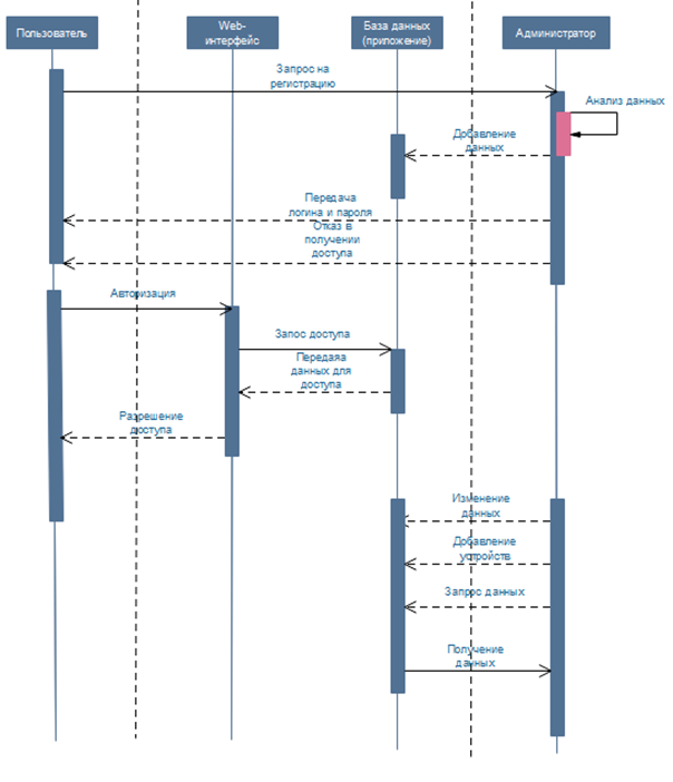 – администратор осуществляет управление пользователями: сопровождает, добавляет и редактирует информацию сотрудников (логин, пароль и др.);