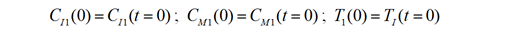 Получение решения уравнений модели не вызывает серьезных трудностей и может быть реализовано с помощью широко известных численных методов. Так, для решения системы нелинейных алгебраических уравнений (16)–(19) использовался метод Ньютона – Рафсона, а для решения систем дифференциальных уравнений (4), (7), (10), (13) метод Рунге – Кутта 4-го порядка.