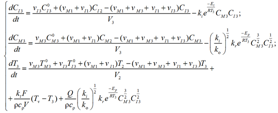 Окончательно математическая модель 1-й зоны реактора представляет собой систему из трех обыкновенных дифференциальных уравнений: