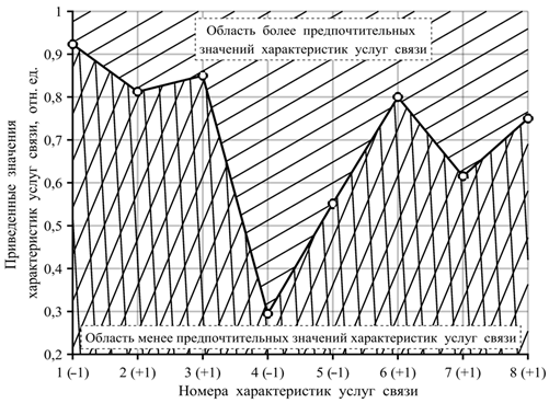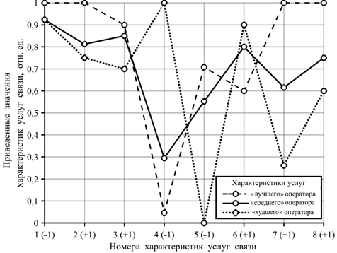 На рис. 1 линия с маркерами представляет собой график приведенных средних значений характеристик услуг операторов мобильной связи в соответствии с данными из табл. 4.