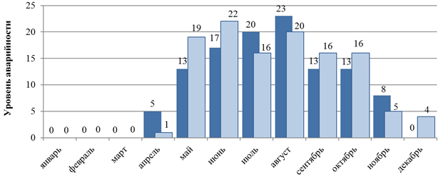 Рис. 1. Количество аварий судов на ВВП за период 2020–2021 гг.