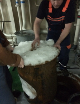 Силами судового экипажа были приняты меры для устранения обозначенной проблемы: применены ручной способ очистки ящиков и установка на приемных трубопроводах специальных приемных решеток (ловушек). Но все принятые усилия оказались недостаточными в связи с огромным количеством шуги, вошедшей в приемные ящики, особенно на маневрах, когда приемные отверстия ящиков становятся более открытыми для приема шуги.