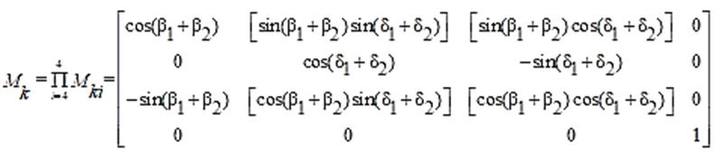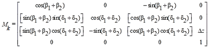 where Mki – inverse matrices getting on i positions trajectory of IR; b1 and b2, d1 and d2 − respectively, the angles of rotation around the coordinate axis Y, X .