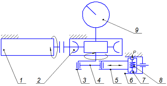 Fig. 4. The drawing of the reciprocating friction machine: 1 – an electric motor; 2 – a worm gearbox; 3 – a crank shaft;