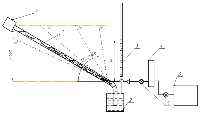When deviating from the vertical position, friction losses increase according to formula (2); experimental studies were carried out to prove this statement [8-10].