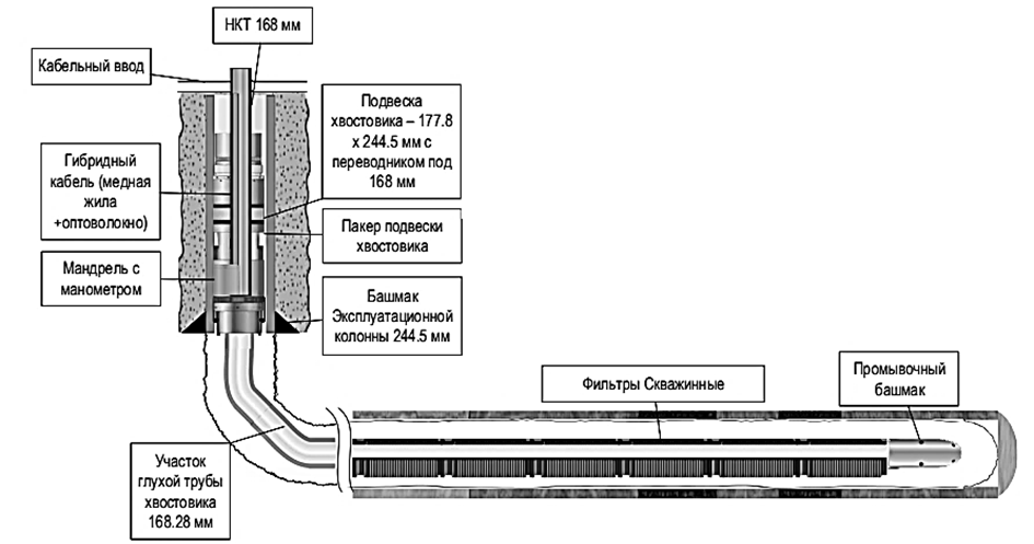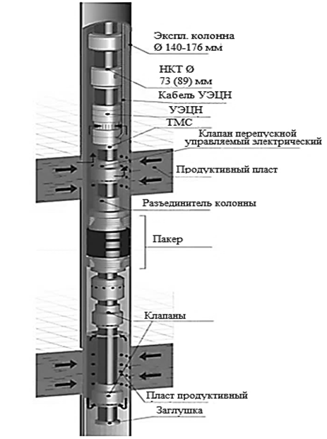 На рис. 2 представлена компоновка для одновременно-раздельной эксплуатации (ОРЭ), которая зарекомендовала себя на месторождении ТПП «Урайнефтегаз» ООО «ЛУКОЙЛ-Западная Сибирь».