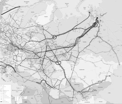 Большая часть природного газа транспортируется либо трубопроводным методом, либо сжижается и отправляется в места назначения другими способами. С момента повышения популярности нетрадиционной газовой продукции, такого как, например сланцевого газа, рынок сжиженного природного газа (СПГ) значительно увеличил свою долю в мировых масштабах. Для нахождения потенциальных мест применения котлов-утилизаторов важно понимать, как газ поступает от дистрибьюторов до потребителей. Как известно, мировые торговые потоки в подавляющем количестве представляют собой трубопроводы (рис. 1).