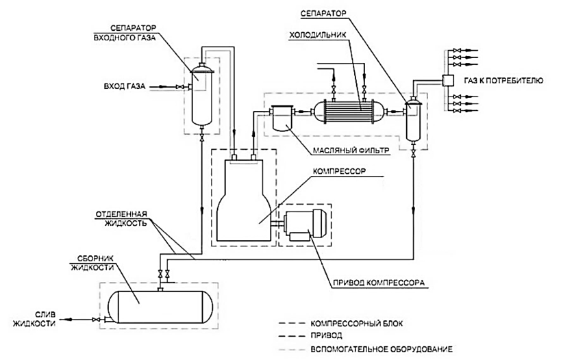 Рис. 4. Принципиальная конструкция дожимной компрессорной станции