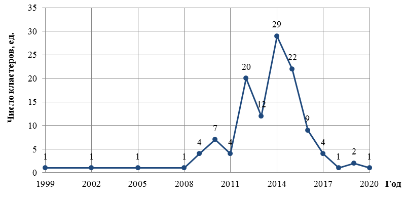 Fig. 1. Dynamics of the number of clusters in Russia [10]