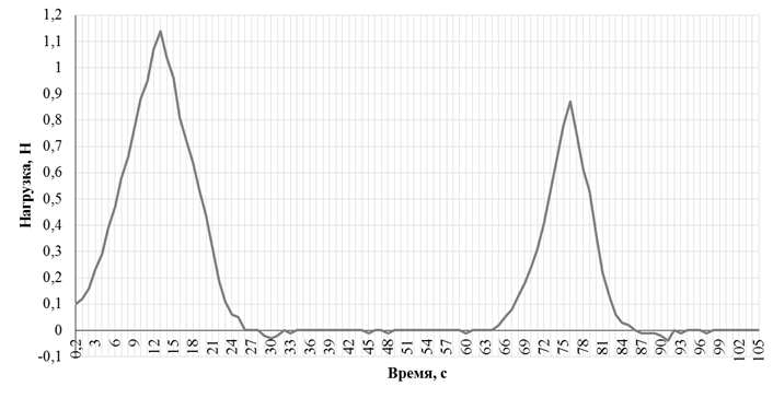 Измерение структурно-механических характеристик пищевого наполнителя выполнено в рамках испытания ТРА (анализ профиля текстуры) на сжатие на текстурометре Brookfield CT3 [9]. Результаты измерения текстурного профиля образца представлены на рис. 3 и в табл. 8.