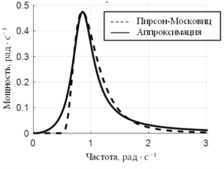 где – частота. На рис. 4 показано сравнение спектра Пирсона – Московица с его линейной аппроксимацией.