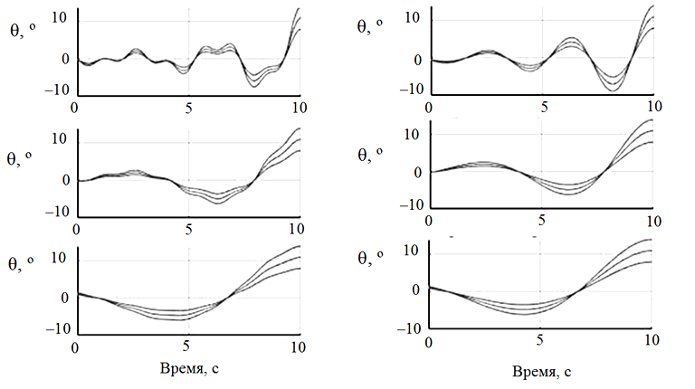 Для системы (1) были получены профили пороговых состояний для крена от 1 до 11º. Применение нескольких профилей обусловлено тем, что движение к большим порогам происходит через пересечение маленьких, а наличие порогов выше основного порога позволит также выделить и основной порог.