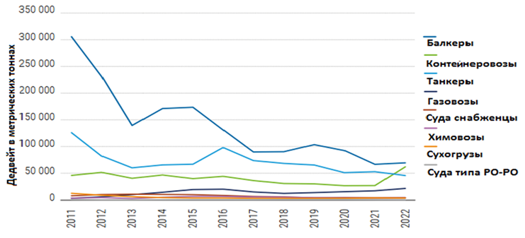 Fig. 3. Deadweight of the world fleet by types of vessels [1]
