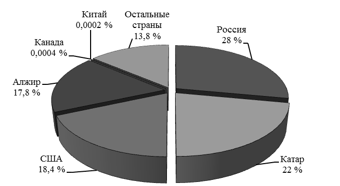 Рис. 1. Распределение запасов гелия по странам